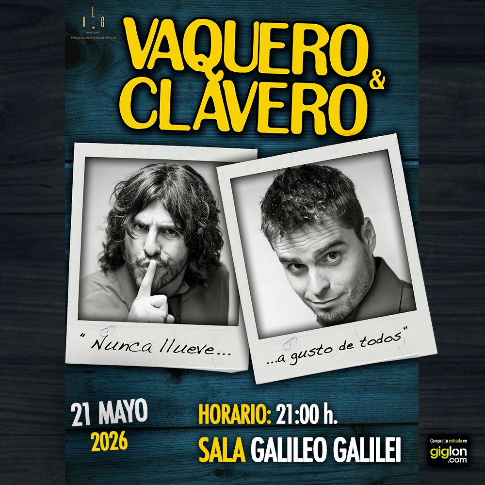 Vaquero & Clavero en Madrid mayo 21 @ 9:00 pm Sala Galileo Galilei C. de Galileo, 100, Madrid, Madrid, España 18€