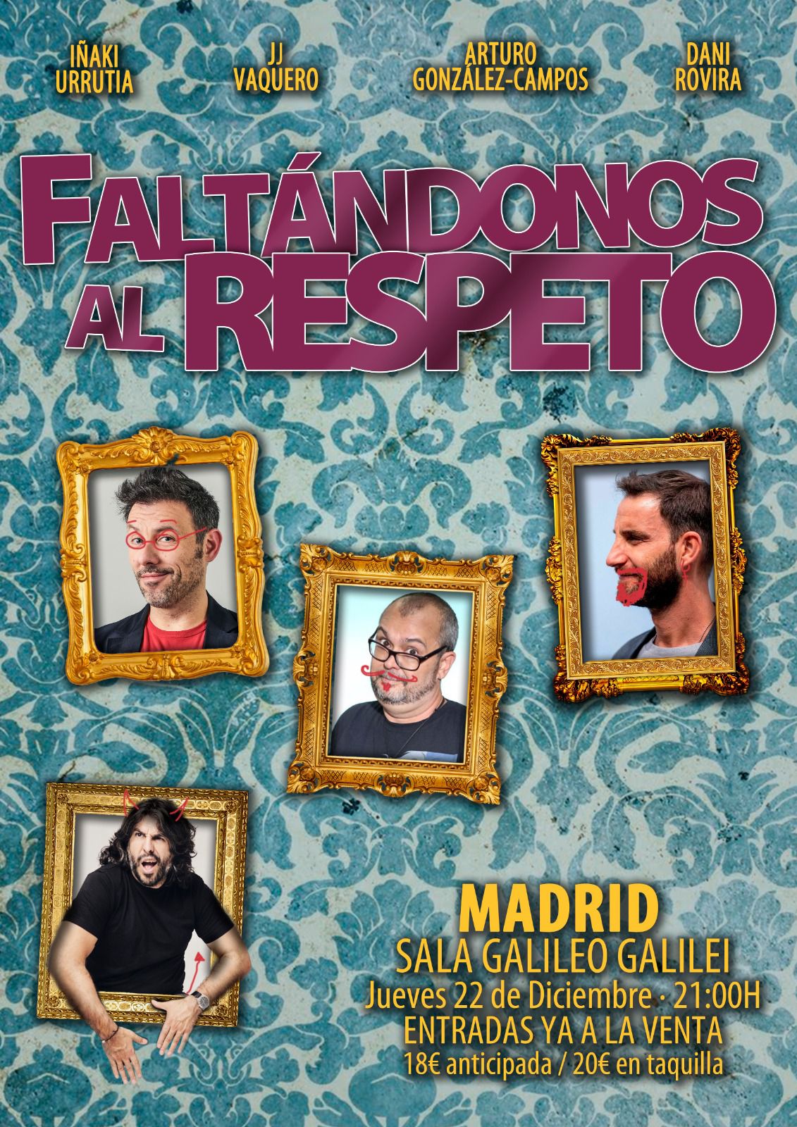 22 diciembre, 2022 @ 9:00 pm Faltándonos al respeto, con JJ Vaquero en Madrid Sala Galileo Galilei C. de Galileo, 100, Madrid, Madrid, España 18€ – 20€