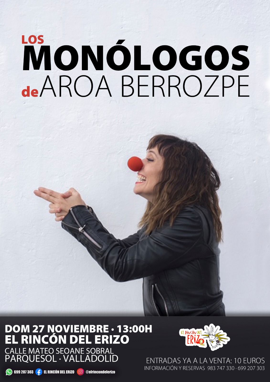 27 noviembre, 2022 @ 1:00 pm Los monólogos de Aroa Berrozpe en El Rincón del Erizo El Rincon Del Erizo Calle Mateo Seoane Sobral 22, Valladolid, Valladolid, España 10€