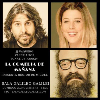 20 noviembre, 2022 @ 12:30 pm «La Comedia De Mañana» con JJ Vaquero, Ignatius Farray y Valeria Ros en Madrid Sala Galileo Galilei C. de Galileo, 100, Madrid, Madrid, España 18€
