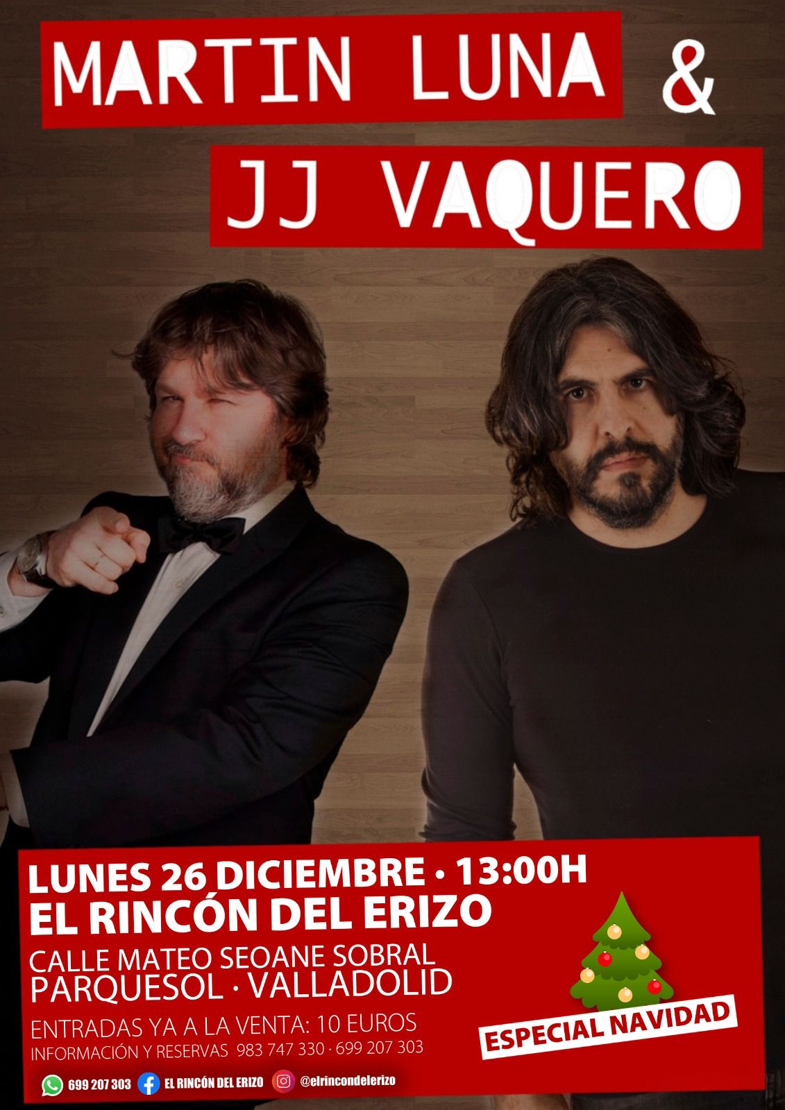 26 diciembre, 2022 @ 1:00 pm Martín Luna y JJ Vaquero en El Rincón del Erizo El Rincon Del Erizo Calle Mateo Seoane Sobral 22, Valladolid, Valladolid, España 10€