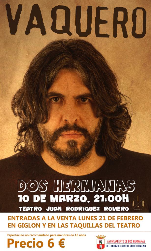 10 marzo, 2022 @ 9:00 pm JJ Vaquero en Dos Hermanas Teatro Municipal Juan Rodríguez Romero Calle Ntra. Sra. de Valme, 35, Dos Hermanas, Sevilla, España 6€