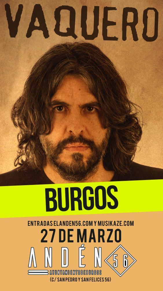 27 marzo, 2022 @ 6:30 pm JJ Vaquero en Burgos Sala Andén 56 C. San Pedro y San Felices, 56, Burgos, Burgos, España 14€ – 17€