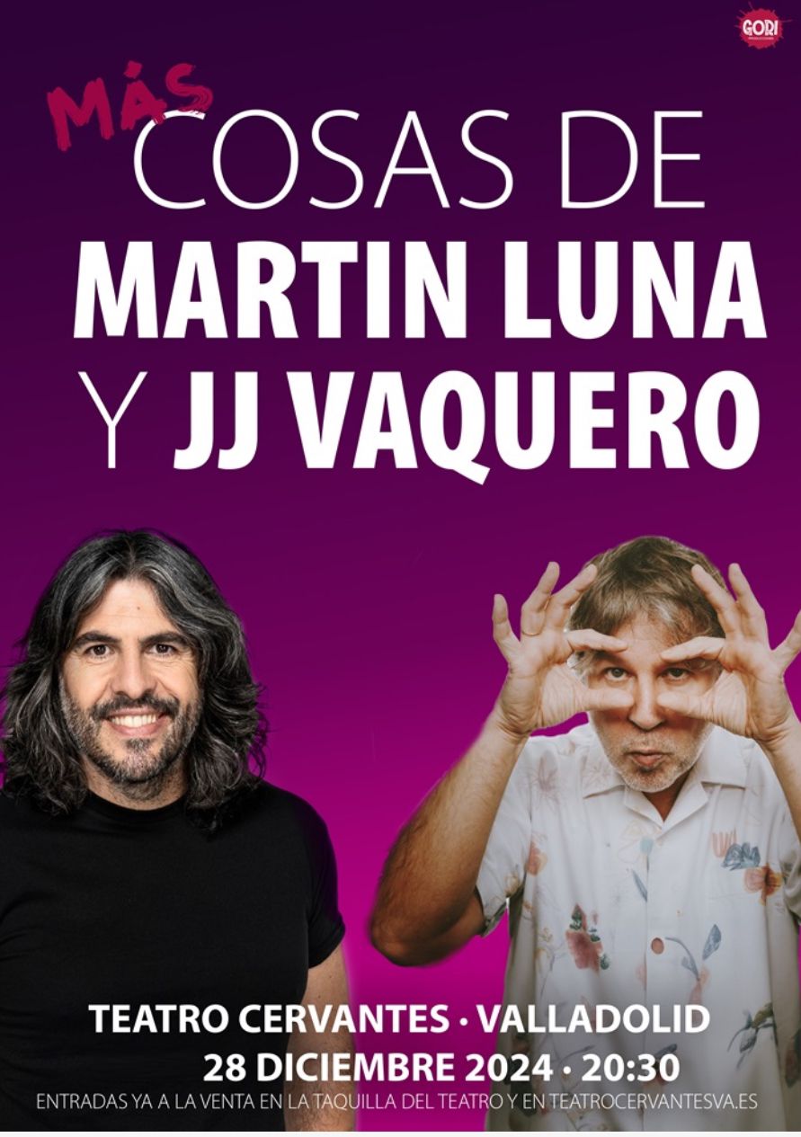 28 diciembre, 2024 @ 8:30 pm JJ Vaquero y Martín Luna en Valladolid Teatro Cervantes Valladolid C. del Santuario, 22, Valladolid, Valladolid, Spain 16€